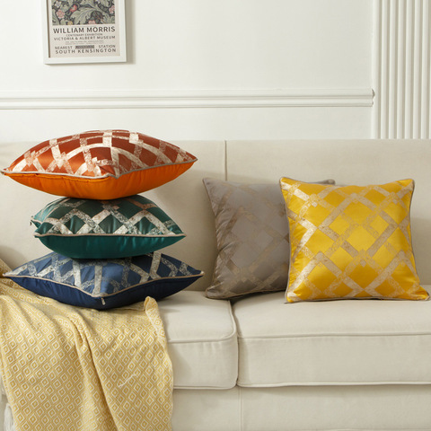 Funda de almohada de lujo con estampado geométrico, funda de sofá de color sólido, ligera, americana
