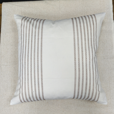 ปลอกหมอนอิงทรงสี่เหลี่ยมผ้าฝ้ายทอลายแถบสีเทาอ่อน